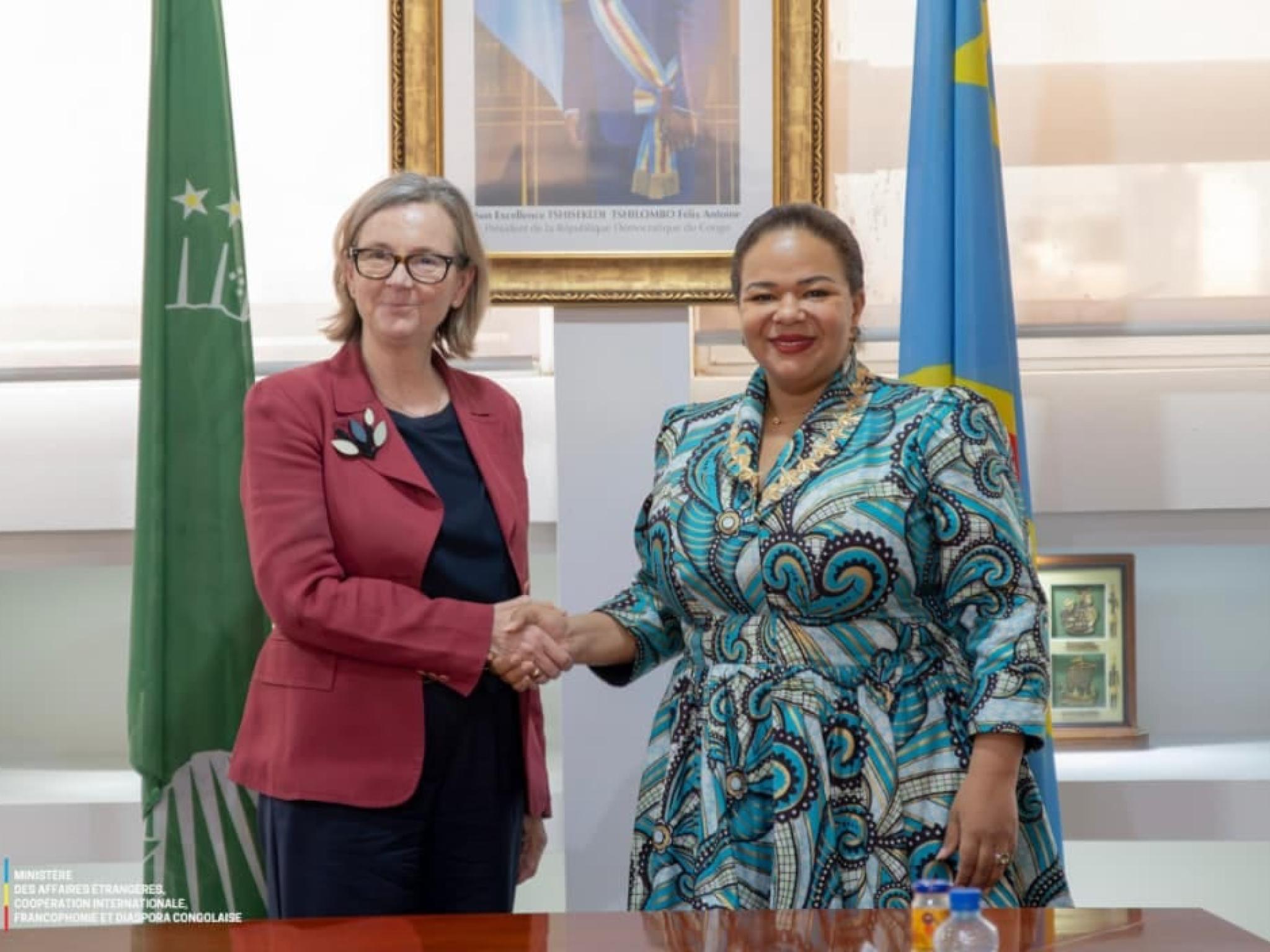 La ministre d’État en charge des Affaires étrangères, Thérèse Kayikwamba Wagner, a reçu à cette occasion Patricia Llombart, Directrice générale Afrique du Service européen pour l’action extérieure de l’Union européenne. Cette rencontre de haut niveau témoigne de la volonté commune de renforcer les relations entre Kinshasa et Bruxelles.