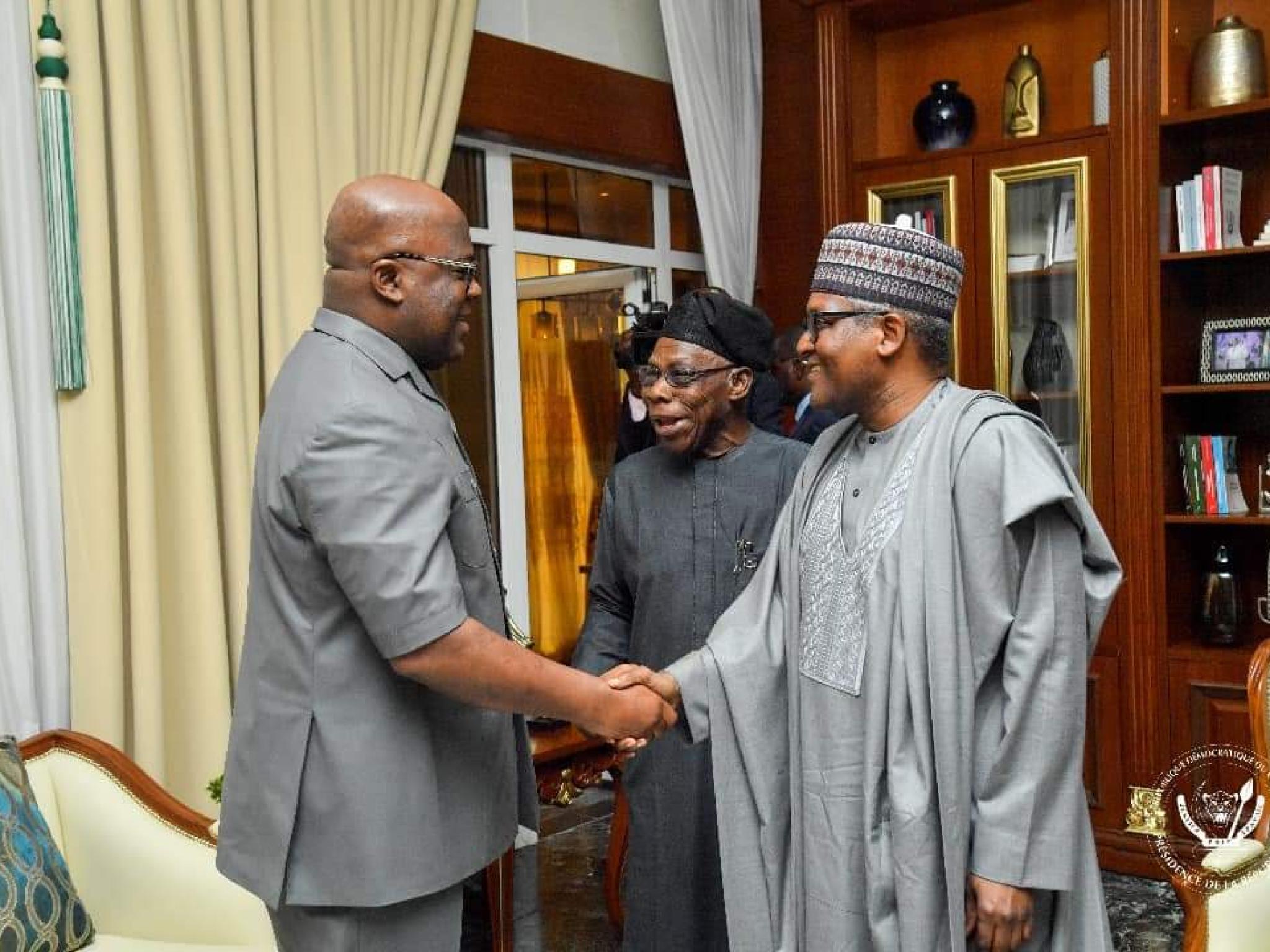 « Enfin, il s’agissait de voir dans le cadre du DRC-Nigeria Business Council, qui permet le rapprochement, la facilitation et l’intégration économique entre nos pays, comment on pourrait tirer profit d’un de nos plus grands investisseurs Aliko Dangote", a rajouté l’ancien Président nigérian.