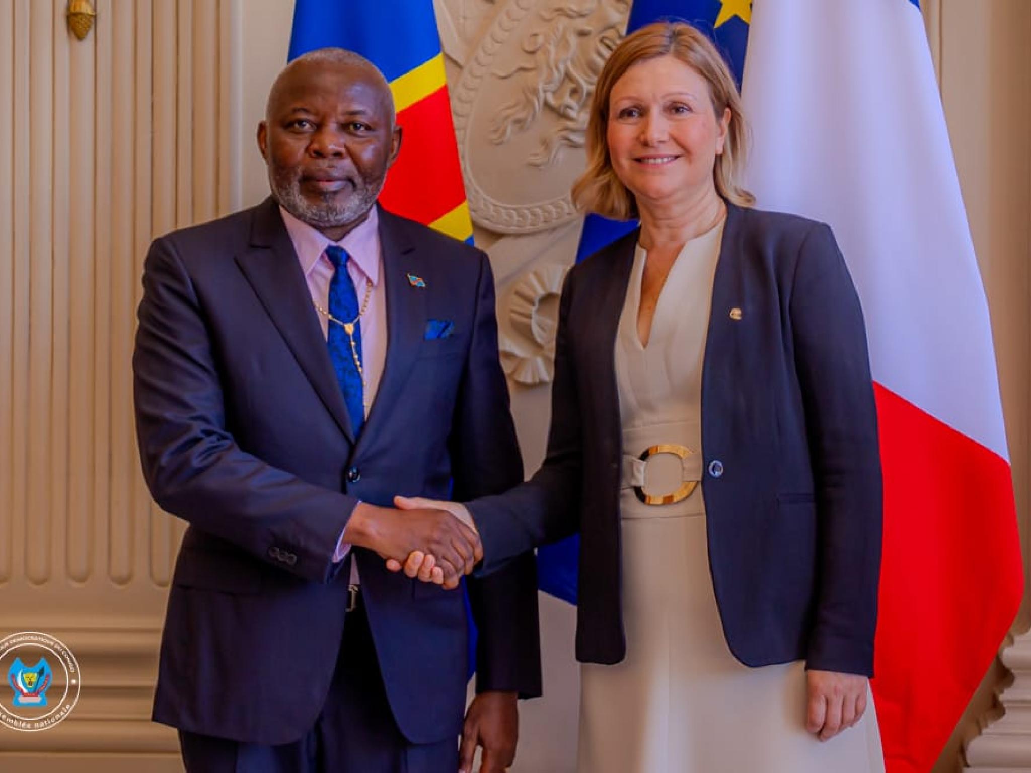 Le président de l’Assemblée nationale congolaise, Vital Kamerhe, et son homologue française, Yaël Braun-Pivet, ont passé en revue, ce vendredi, la situation sécuritaire dans l'est de la République démocratique du Congo. Au cours de cet échange, indique la cellule de communication de la chambre basse du parlement congolais, les deux personnalités ont mis un accent particulier sur l'accord signé le 27 juin entre la RDC et le Rwanda, sous la médiation des États-Unis.