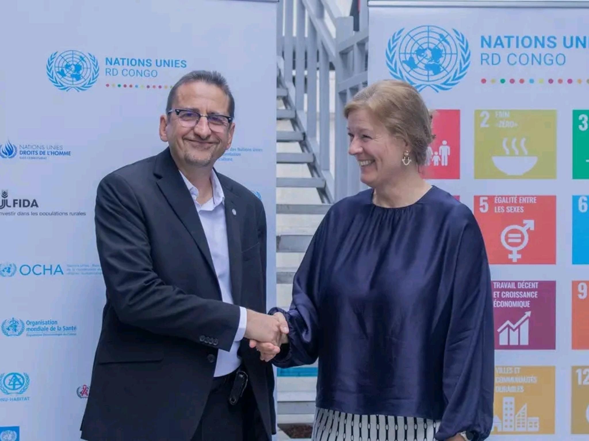 Le Coordonnateur résident du Système des Nations Unies en République démocratique du Congo, Bruno Lemarquis, a reçu en audience, ce mercredi 15 avril 2026, Louise Chamberlain, Coordonnatrice exécutive adjointe de UN Volunteers, en visite officielle dans le pays.